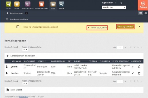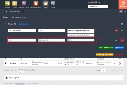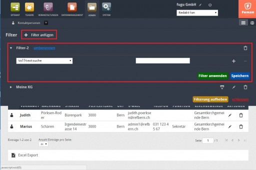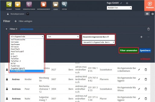 Im Fuman spielen Filter eine zentrale Rolle. Mit den Filtern, kann man die Daten nach den gewünschten Kriterien filtern und somit schneller die gewünschten Resultate finden.