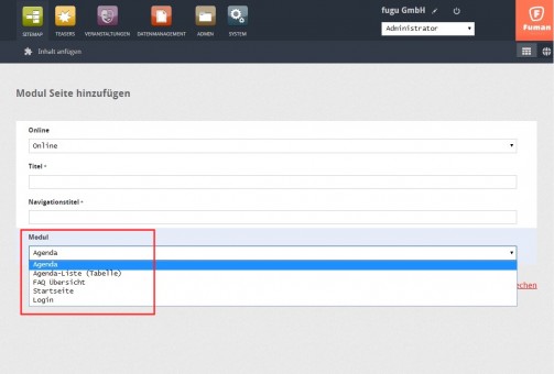 Modul Seiten, sind Seiten mit einem vordefinierten Inhalt und Design. Nachfolgend werden wird auf die einzelnen Module und deren Funktionen eingehen.